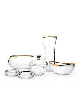 Ana Sayfa - ikinci el eşyalar - cam aksesuarları cam eşyalar - Altın Yaldızlı Masa Dekor SETİ
